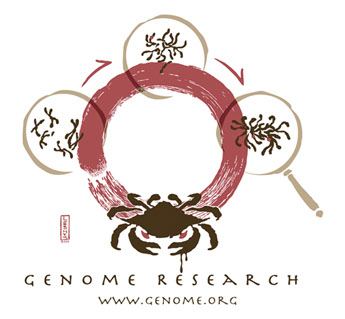 Illustrated design produced as a special Cancer Genomics conference T-shirt for the journal Genome Research. Based on the Zen meditation practice in which the practitioner paints an "enso" (Japanese; literally "circle") each day as a single brush stroke as an exercise in focus, natural wholeness, and renewal. In this context, however, the process represents the repeating cell cycle (overlain by enso-like nuclei with chromosomes), which carcinogenesis "redraws" in stages (through accumulating mutations, shown as red dots) until the cell is another thing entirely (bottom), with seeming mind and agenda of its own. Cancer Genomics seeks to understand the process (magnifying lens at right).