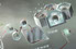 Another detail from the special 2009 "Personal Genomes" poster I created for the journal Genome Research and sponsored by Roche. In this close-up of a high-throughput DNA sequencing methodology using pyrosequencing, a short single-strand sample from a cloned DNA library is bound to a polymer bead at left, outfitted with a primer sequence so that it can be copied while bound; the membrane-looking sphere is a water microdroplet that serves as a tiny reactor vessel in which the sample strand is then amplified by PCR reagents so that the bead is studded with copies of the same sample. The whole sample's variety of studded beads is then spread onto a patented plate / chip honeycombed with wells of only a few picoliters each; each well seats one bead and added reagents (including DNA polymerases). When the filled wells are washed with a wave of one specified nucleotide at a time (in this example, "A"), the provided reagents add the base only if it is the next in the exposed strand's sequence; if this is so, the well contents will react with the freed phosphate group to produce a flash of greenish fluorescence (the "pyro" of pyrosequencing). A CCD camera placed over the plate records the exact position of each flash paired with each choice of nucleobase for each well, and thereby builds up the short sequence of each well's strand, which is then compiled with all others by computer as a series of overlapping short-reads, to be finally summed to a single master sequence for the sample.